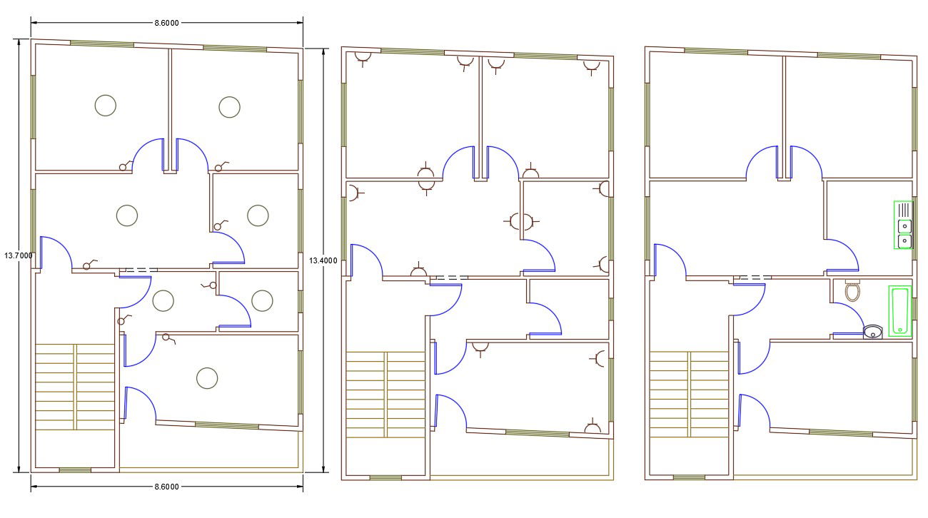 26 by 42 feet plot size for apartment electrical layout plan design which is shows ceiling light point and switchboard installation detail and sanitary ware detail. download the AutoCAD apartment plan design DWG file that will be helpful for presenting the new idea.