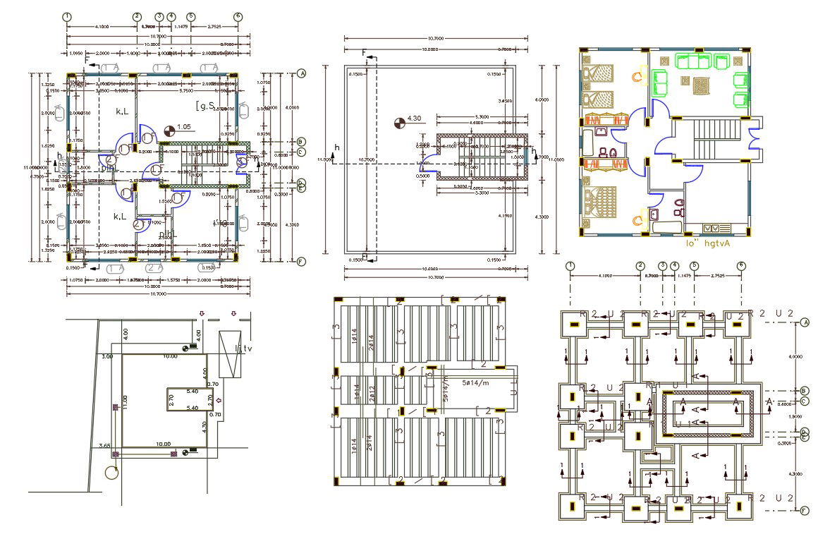 32' X 36' plot size house ground plan design that shows 3 bedrooms, kitchen, drawing room, family lounge, and 2 common toilets. download 1152 sq ft house plan and get more detail of Foundation plan and slab bar construction working with master plan design DWG file.