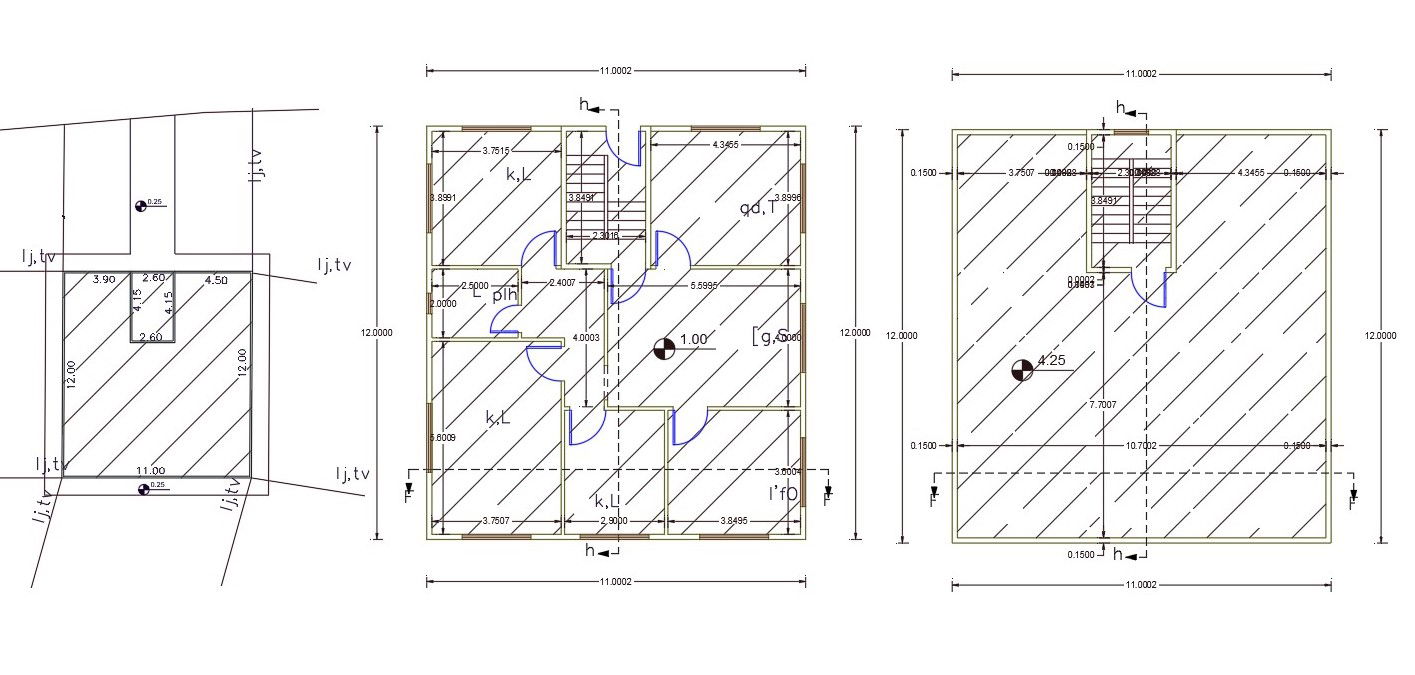 36 by 40 feet plot size for the architecture house plan that shows 3 bedrooms, kitchen, drawing and living room with all dimension details. download ground floor and terrace plan design with site plot plan land survey detail.