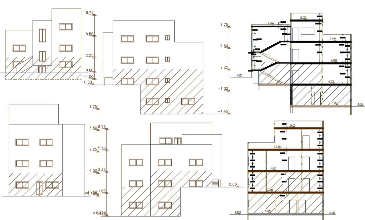 AutoCAD drawing of architecture house building section drawing and elevation design with dimension detail. download house building project design DWG file.