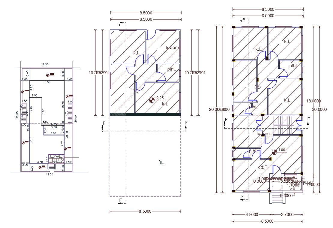 2d CAD drawing of architecture AutoCAD house floor plan design with site plot land survey detail. the contains spacious 3 bedrooms, kitchen, drawing and living rooms with all dimension and number of door marking detail DWG file. download 1755 square feet house plan design DWG file.