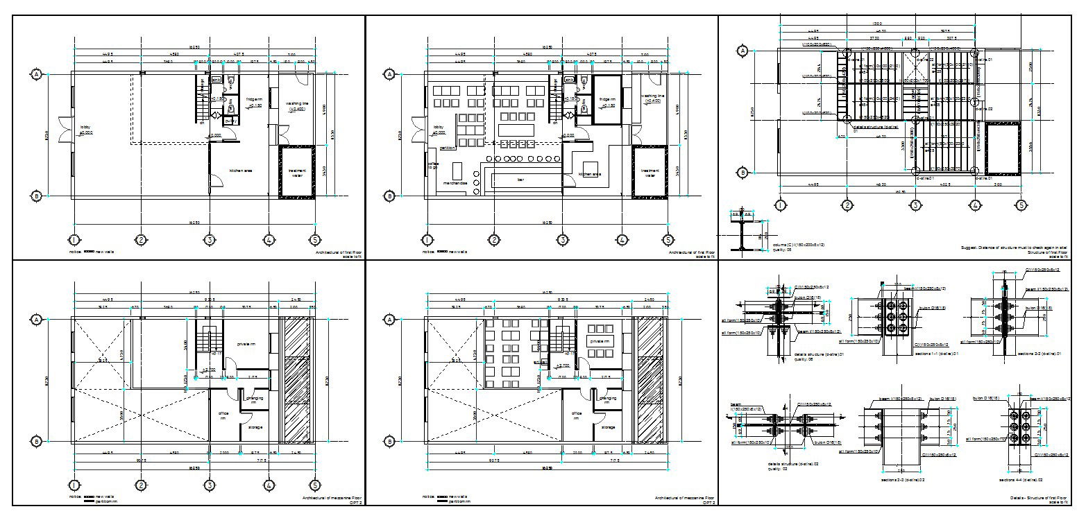 This Restaurant design in washing line, fridge room, treatment room, pulley , storage, kitchen area, partition, lobby, structure detail, changing room, etc detail