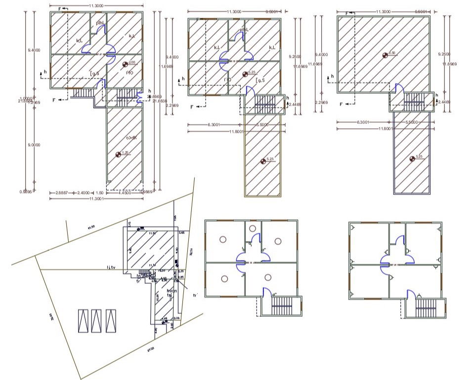 2d CAD drawing of front side retail shop and backside 2 BHK house plan design. the electrical wiring plan and site plot plan with 3 car parking spaces with site plot land detail. download 2 BHK house plan with dimension detail DWG file.