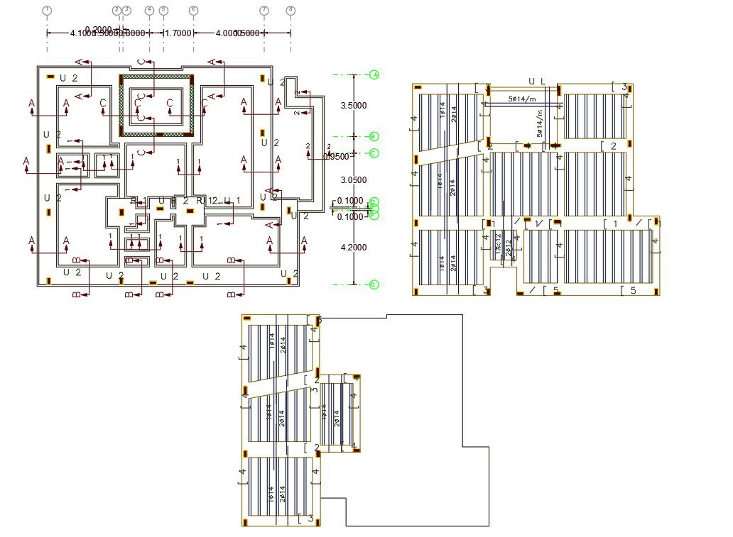 3 BHK luxurious House Construction Working Plan design that shows the foundation plan with excavation with slab bar structure design with dimension detail. download 40 by 45 feet house construction working plan design DWG file.