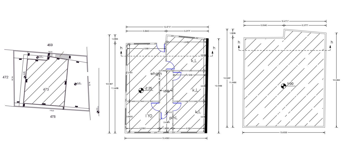 AutoCAD drawing of 32 by 40 feet plot size for ground floor house plan design includes 3 bedrooms, kitchen, drawing and common toilet with dimension detail. download free DWG file of 3 BHK house plan design with site plot drawing.