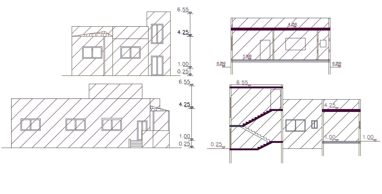 32 by 52 feet architecture house building section elevation design with dimension detail. download 184 square feet house building design that shows a single storey building structure design. download 2 BHK house building design DWG file.