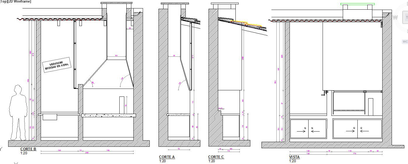 Chimney elevation & section with kitchen detail include & kitchen platform plan & elevation detail include the drawing.