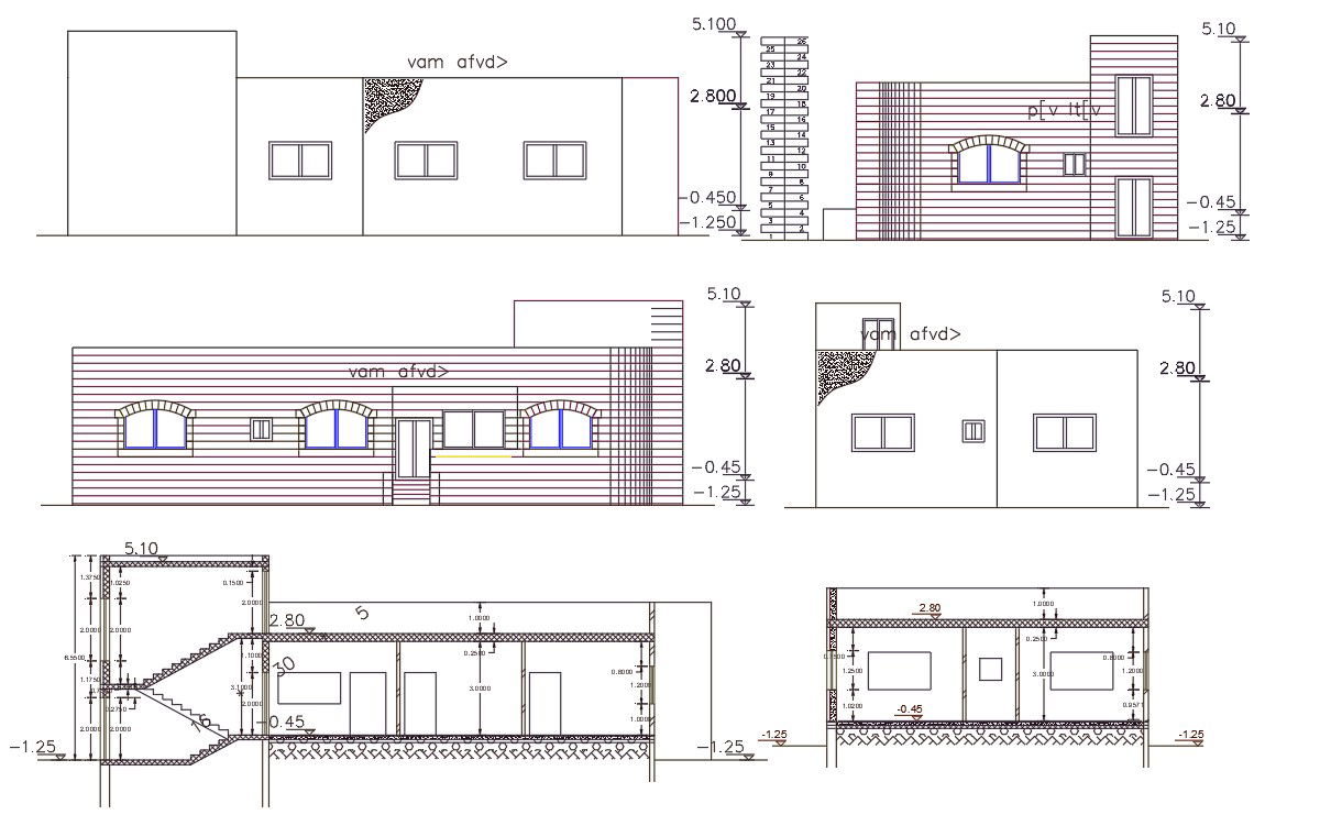 AutoCAD House Building Sectional Elevation DWG File