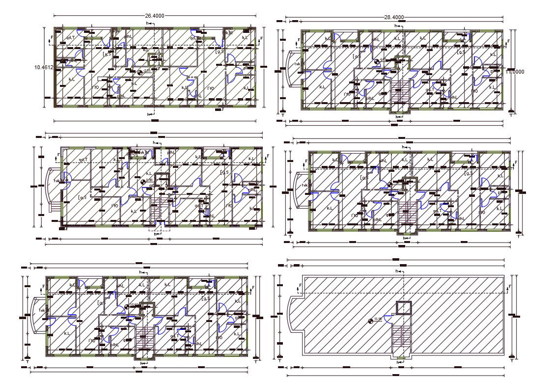 AutoCAD drawing of 36 X 85 feet plot size for apartment 3 BHK house plan design with dimension detail. download the apartment floor plan design DWG file and get more detail of some AutoCAD hatching design.