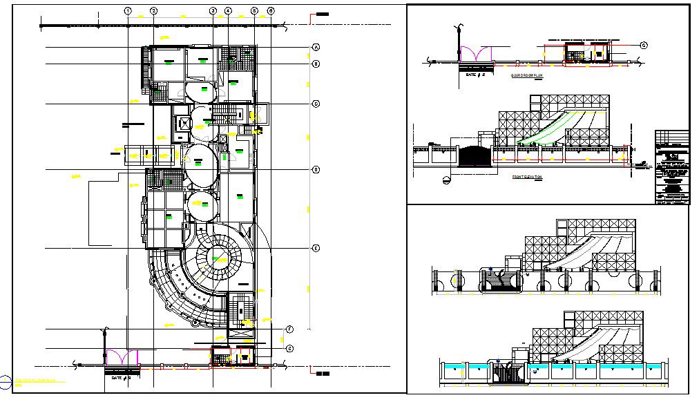 main gate detail in modern bungalows plan lay-out detail & all elevation detail in main gate & entrance design.