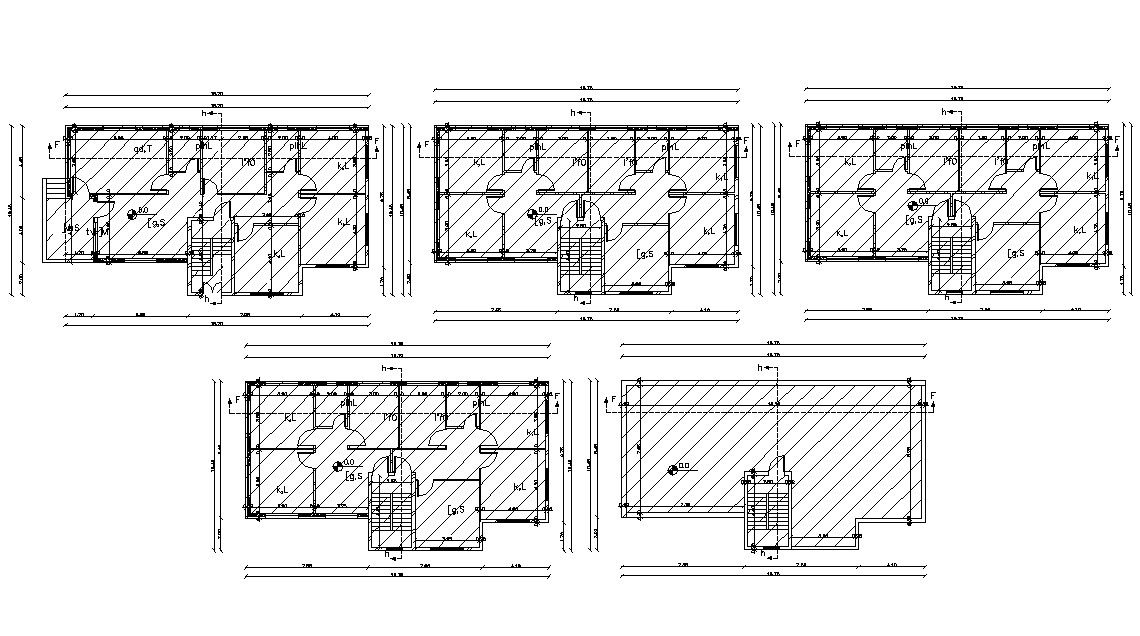 AutoCAD drawing of 2 BHK and 3 BHK apartment house floor plan design with all dimension detail. download 4 storey apartment plan design DWG file.