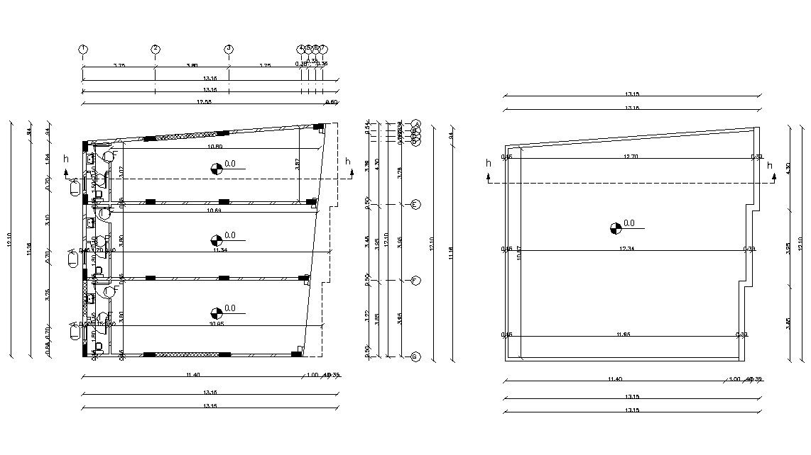 AutoCAD drawing of commercial shop floor plan includes 3 shop with attached toilet. also has column layout detail with dimension detail. download free DWG file of commercial shop plan design.