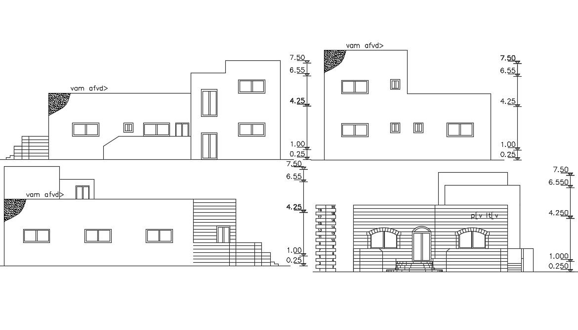2D House Building Elevation Design CAD Drawing