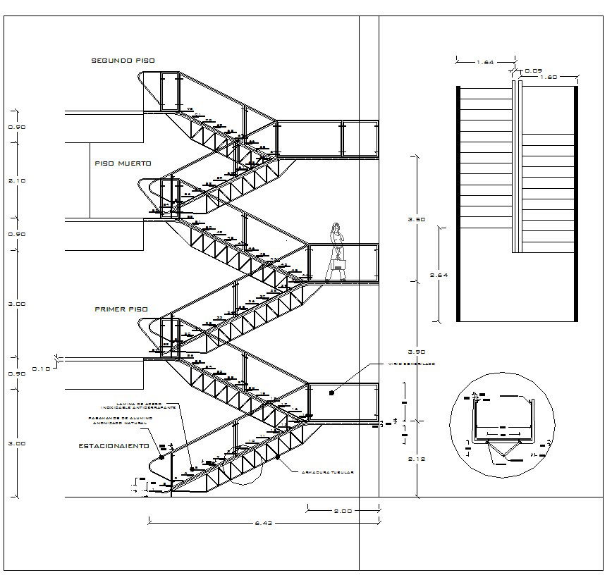 parking lot, First floor detail, dead floor, second floor etc detail. This Stairway plan detail & section design etc.