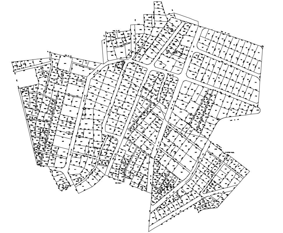 Download free DWG file urban town planning that shows plotting detail, road network, and land survey detail.