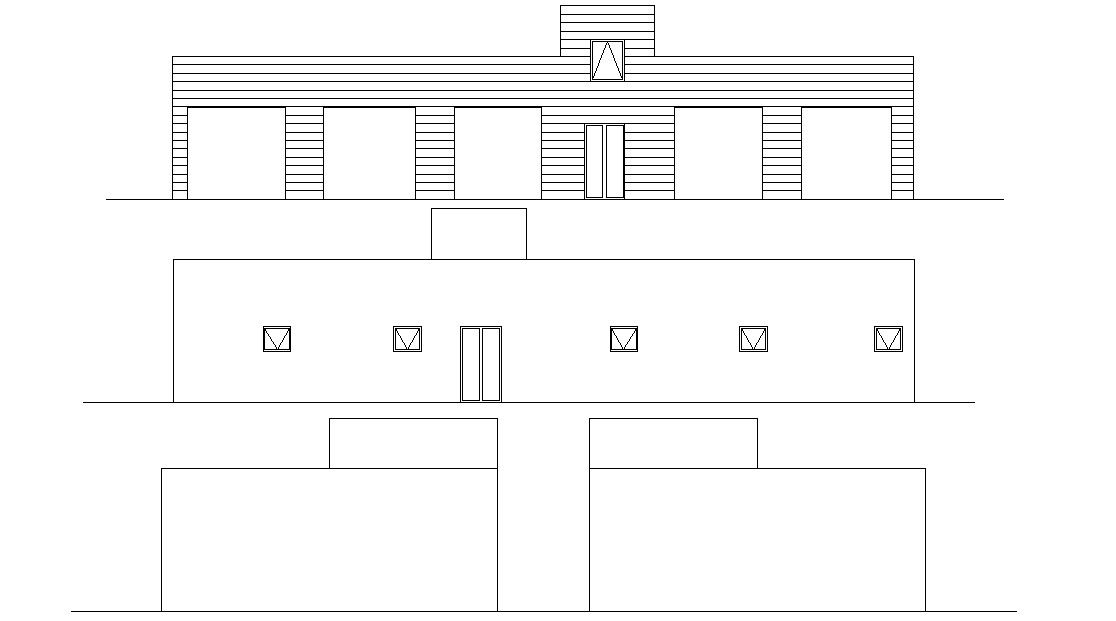 this is 5 commercial shop building all side elevation design with AutoCAD hatching design for improving the CAD presentation. download free retail shop building design DWG file.