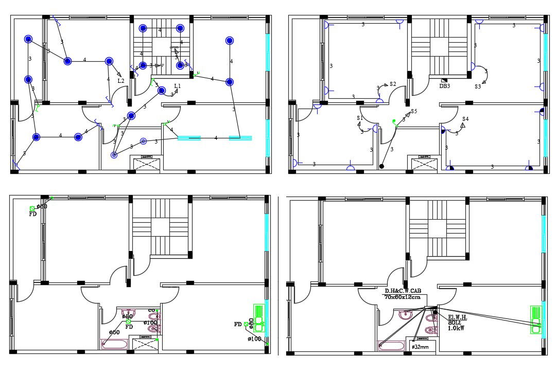 2 BHK House Electrical Wiring And Plumbing Plan Design