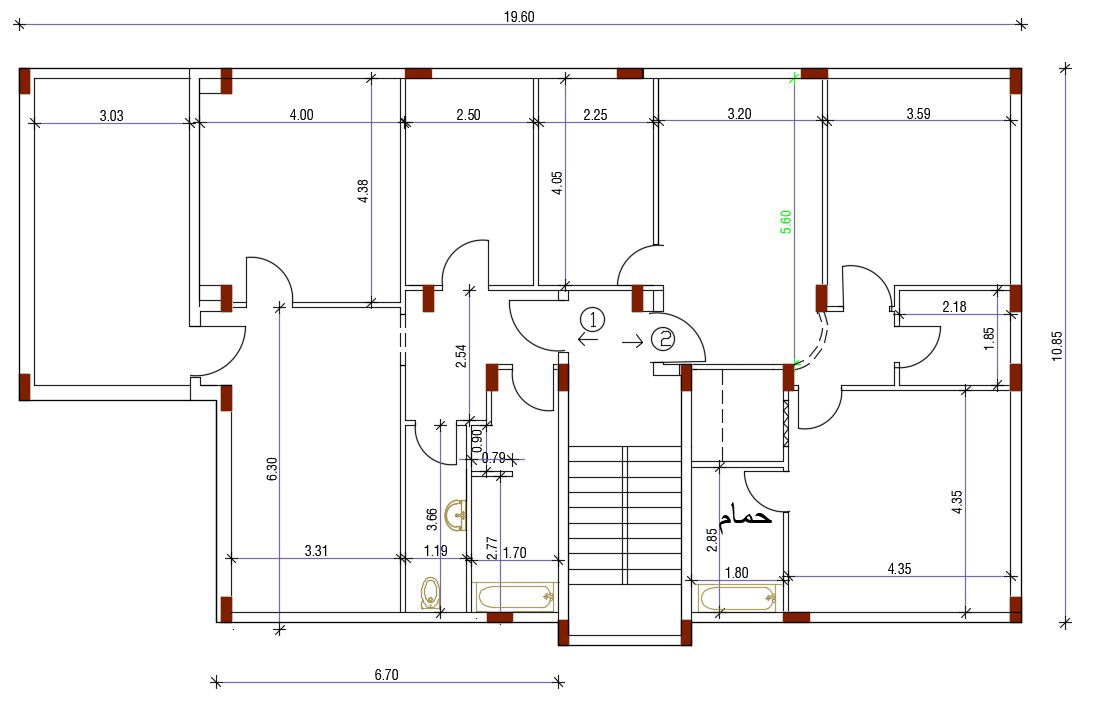 35 by 64 feet architecture dual house plan CAD drawing includes column layout and all dimension detail. download 2 BHK house plan AutoCAD file.