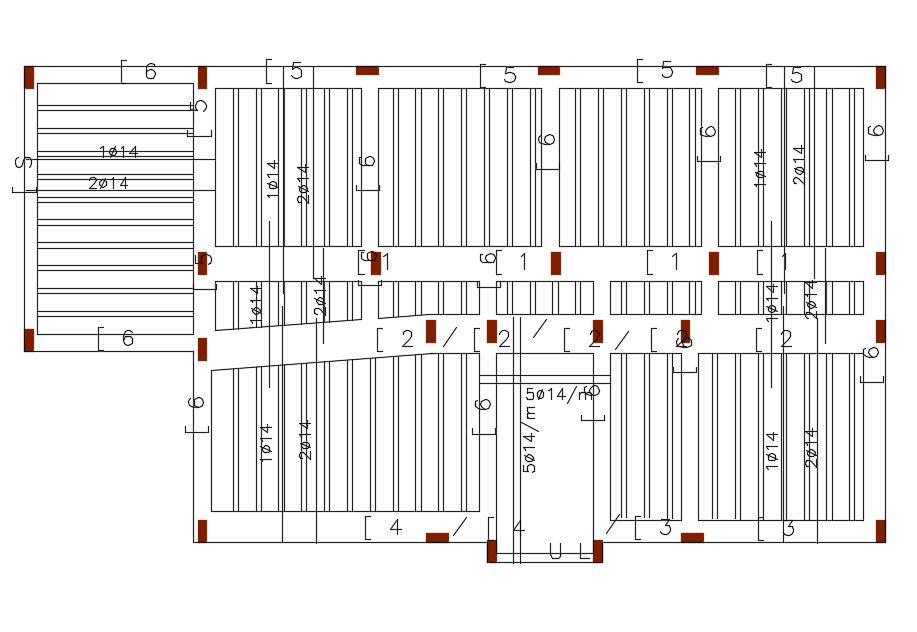 Download free DWG file of reinforcement slab bar structure design with column layout plan detail that shows exact moments in two-way slabs with various support of column and beam.