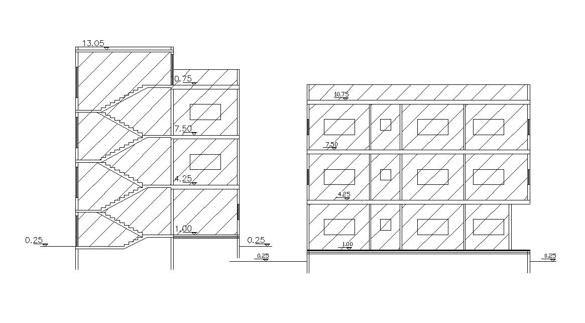 CAD drawing details of residential apartment sectional view design that shows apartmnet floor level details, staircase details, leveling, and various other units details download AutoCAD file for free.