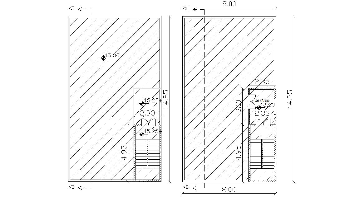 Download Free DWG file of residence house terrace floor plan design with staircase detail and has some AutoCAD hatching design with dimension detail.