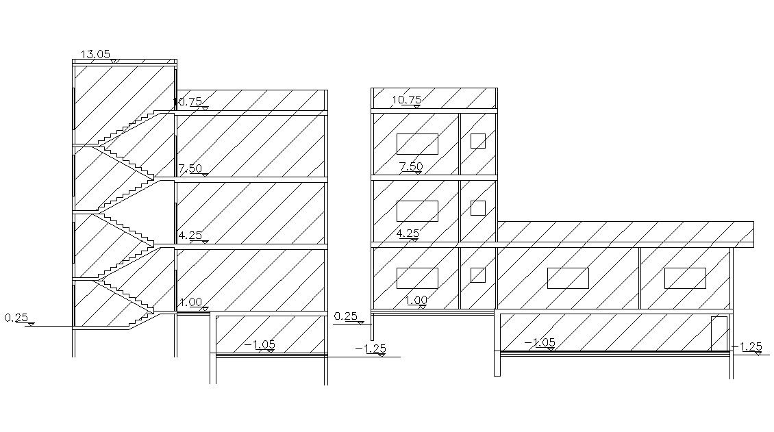 Free download residence living apartment sectional view CAD drawing that presents the apartment floor leveling details along with staircase unit details and much other work details.