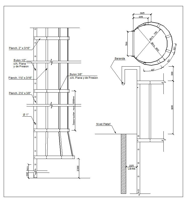 stair detail, Separacion max. 1200mm, AC. Flat and Pressure, etc section detail.
