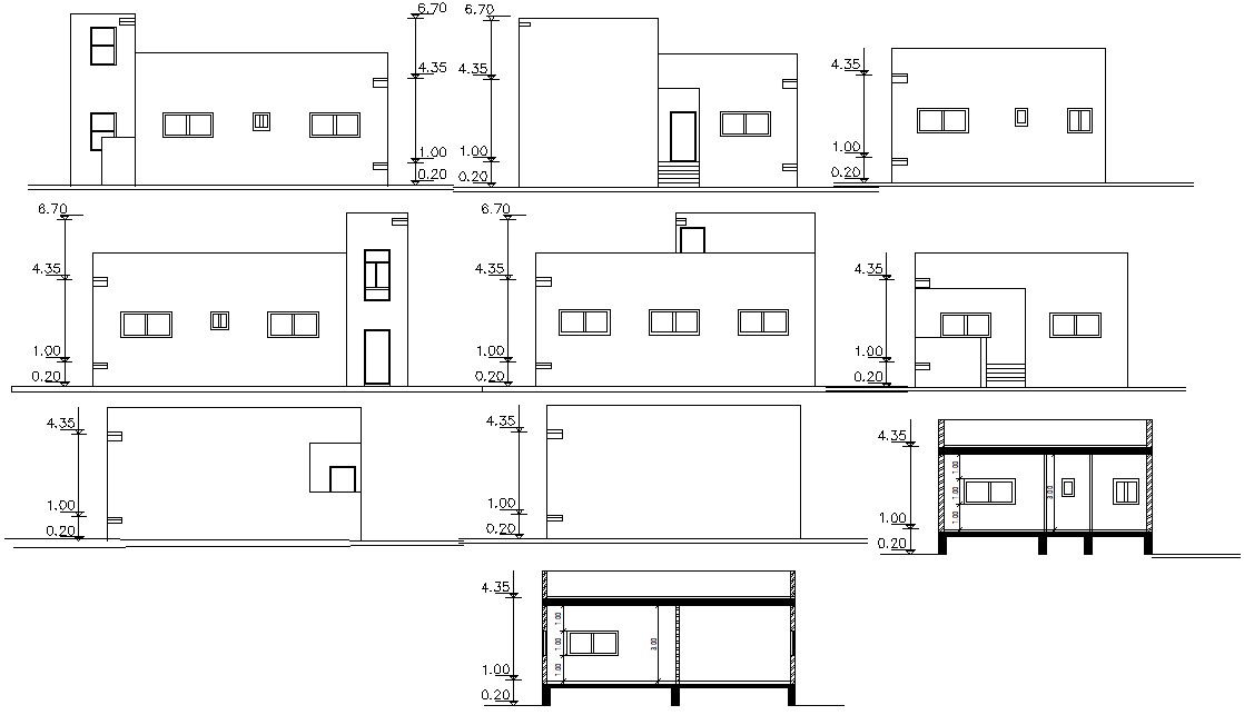 Residence apartment Design elevation drawing that shows building all sides of elevation details along with floor leveling details. Building sectional work details and various other units details also shown in CAD presented file that can be downloaded for free.