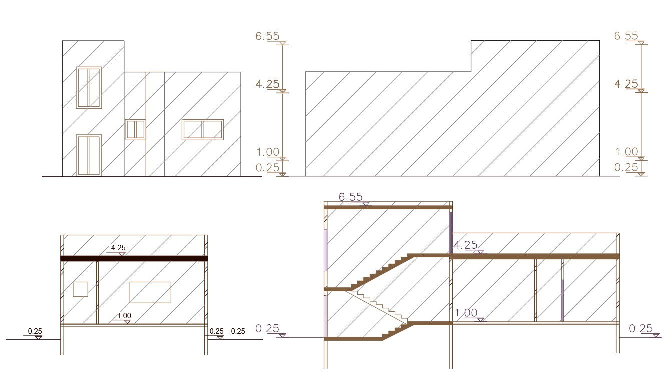 22 feet width and 46 feet depth of dimension 2 BHK single storey house building section drawing and elevation design with dimension detail. download 112 square yards house building design AutoCAD file.