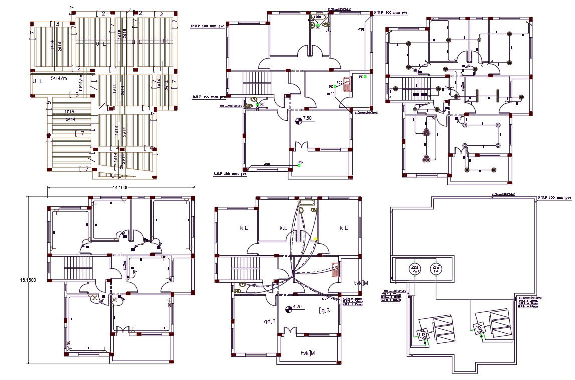45 by 55 feet plot size for 3 BHK apartment floor plan CAD drawing includes electrical wiring plan and plumbing layout plan design for guide line proper installment. also has column alsb bar structure design and sanitary ware detail. download 260 square yards typical apartment plan design DWG file.