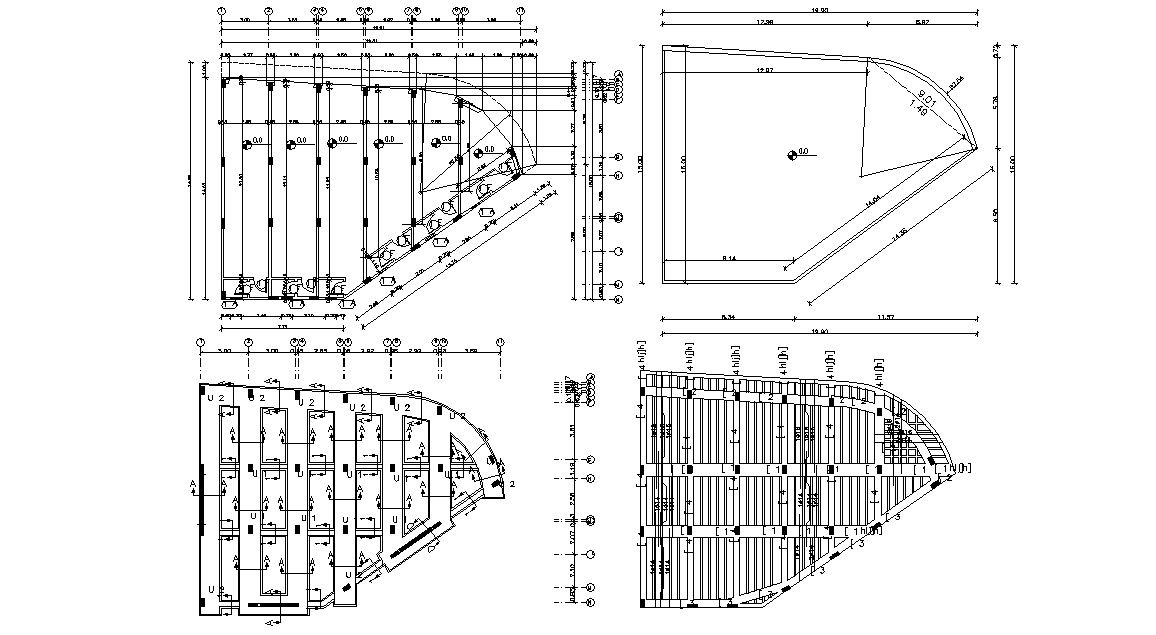 Reinforced Concrete Cement (RCC) Structural work design that shows column layout center line plan details along with RCC slab structure steelwork design which also includes reinforcement bars details in tension and compression zone. Dimension working set, centerline, column size, and various other structural work details download structural work design AutoCAD drawing.