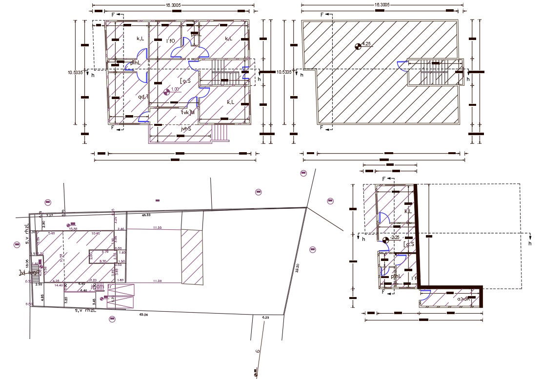 34 by 52 feet plot size for architecture 3 BHK house ground floor and terrace plan design with measurement dimension detail. also can find here site plot with compound wall design and 2 big car parking space. download single storey modern house plan design DWG file.