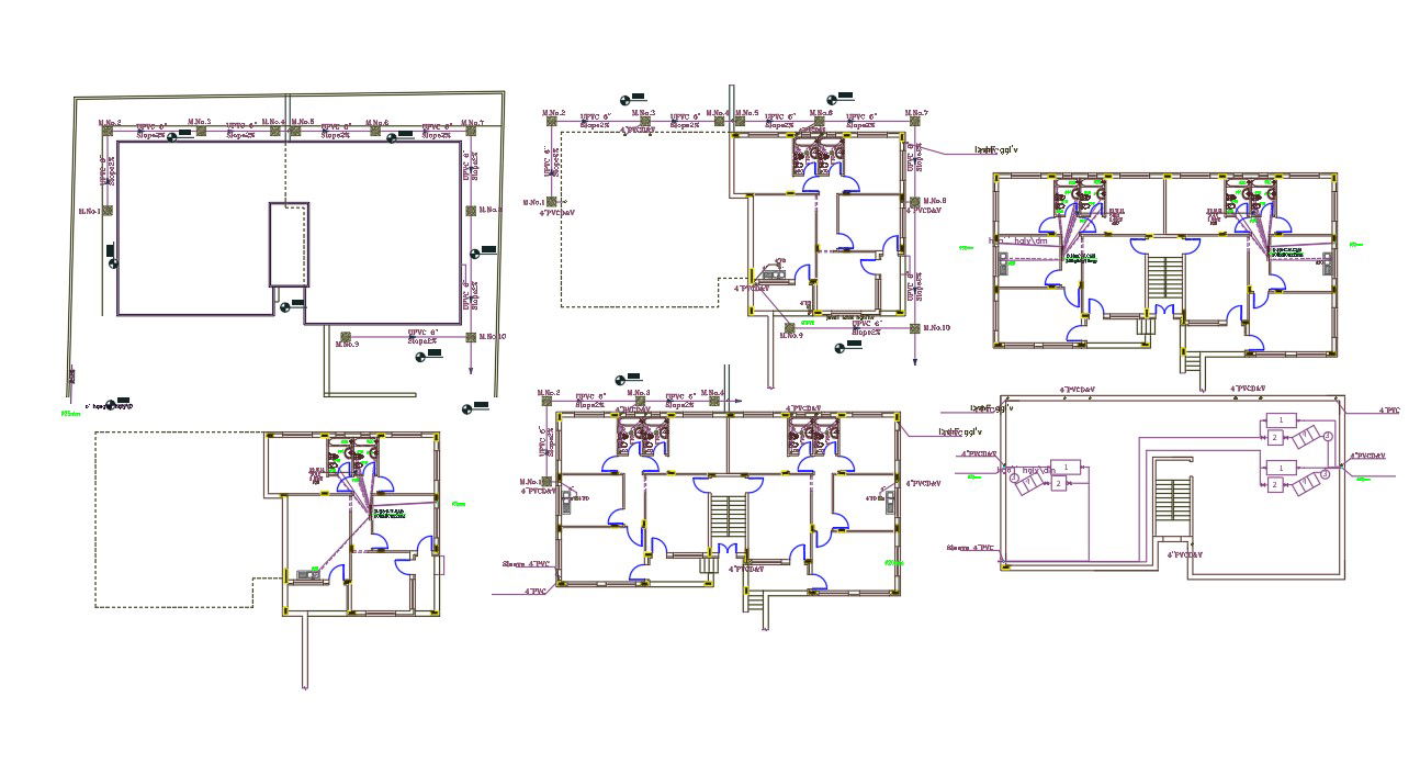 Twin House Plumbing Layout 2D CAD Drawing in DWG Format