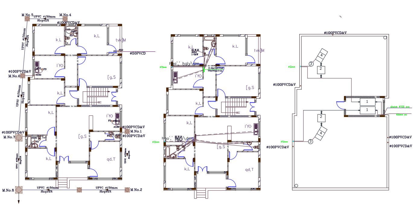 Twin House Plumbing Layout Plan Design DWG File