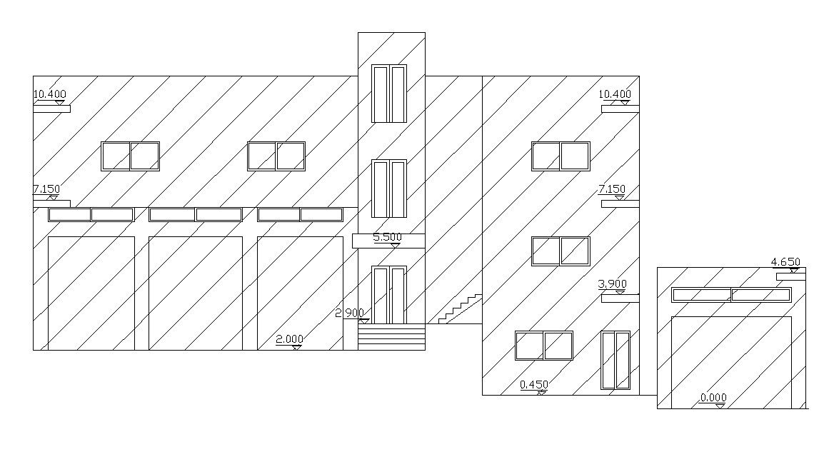 Residence apartment front elevation design architecture CAD drawing that shows apartment floor leveling details along with staircase details. Download architecture apartment front elevation design CAD file for free.