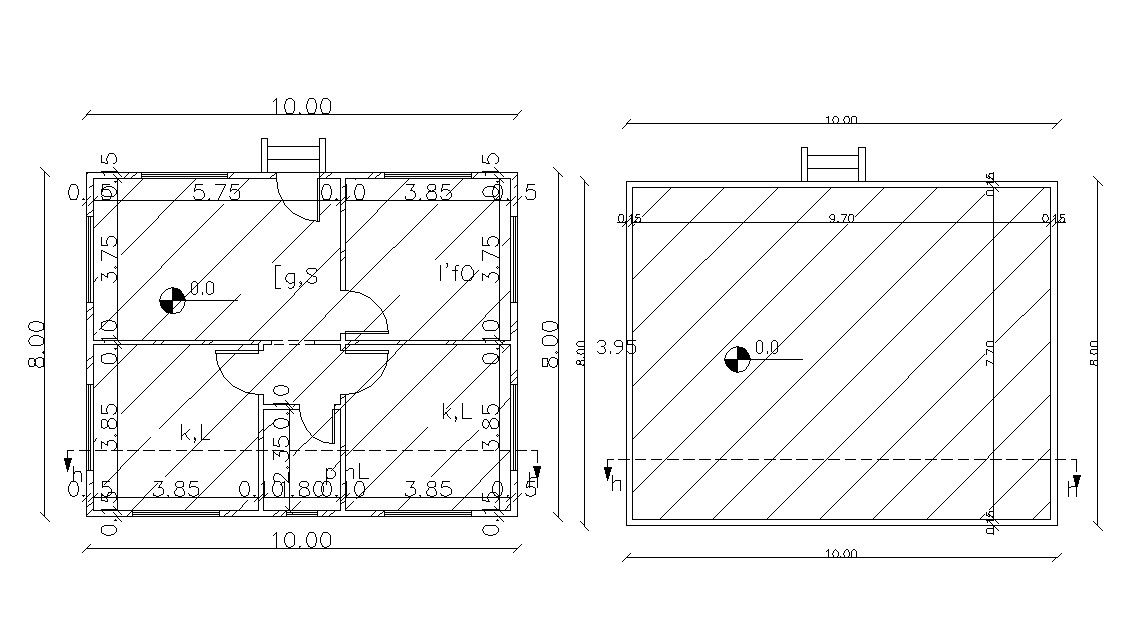 download free DWG file of single tory residence house ground floor and terrace plan design that shows 2 bedrooms, toilet, kitchen and drawing room with measurement dimension detail.