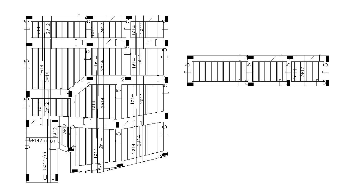 download free DWG file of RCC column slab bar structure design that shows column layout and reinforcement slab which extracts the moments in slabs with various support of the column.
