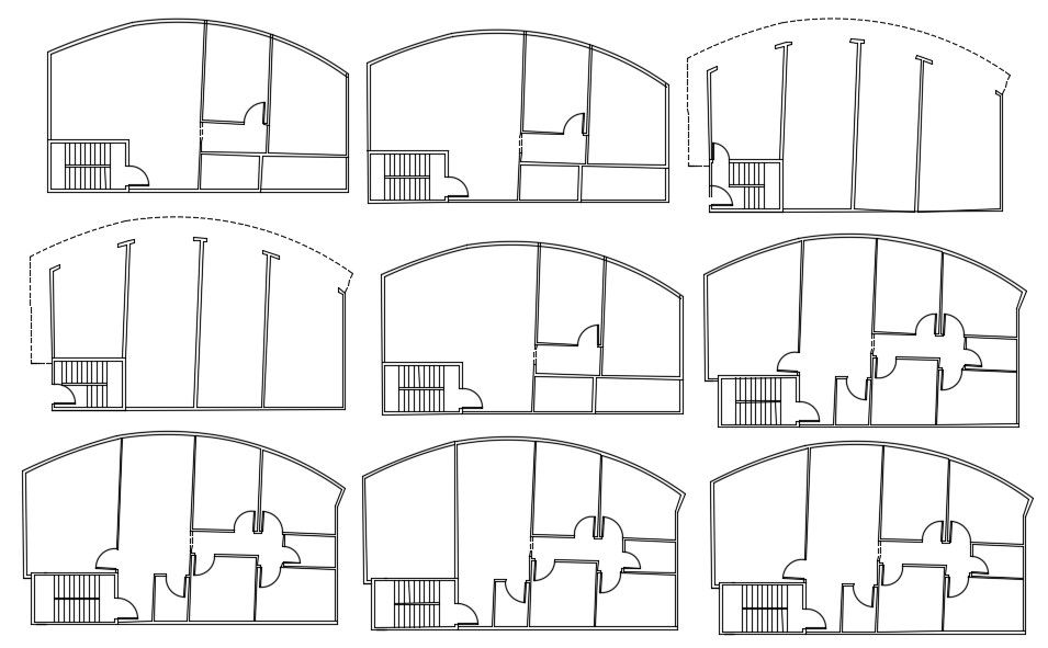 AutoCAD drawing of residence house with a retail shop on the ground floor design. download 2 BHK and 3 BHK house different floor plan design DWG file.