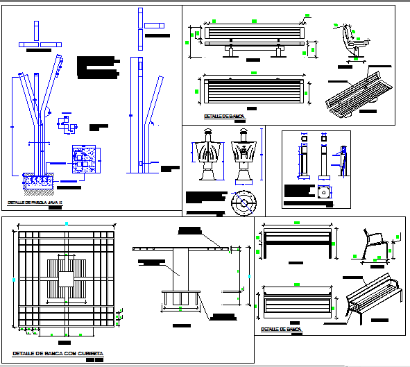 This drawing of benches drawing with different design with plan elevation front view, Side view and also draw isometric view with mentioned all detail and dimension.