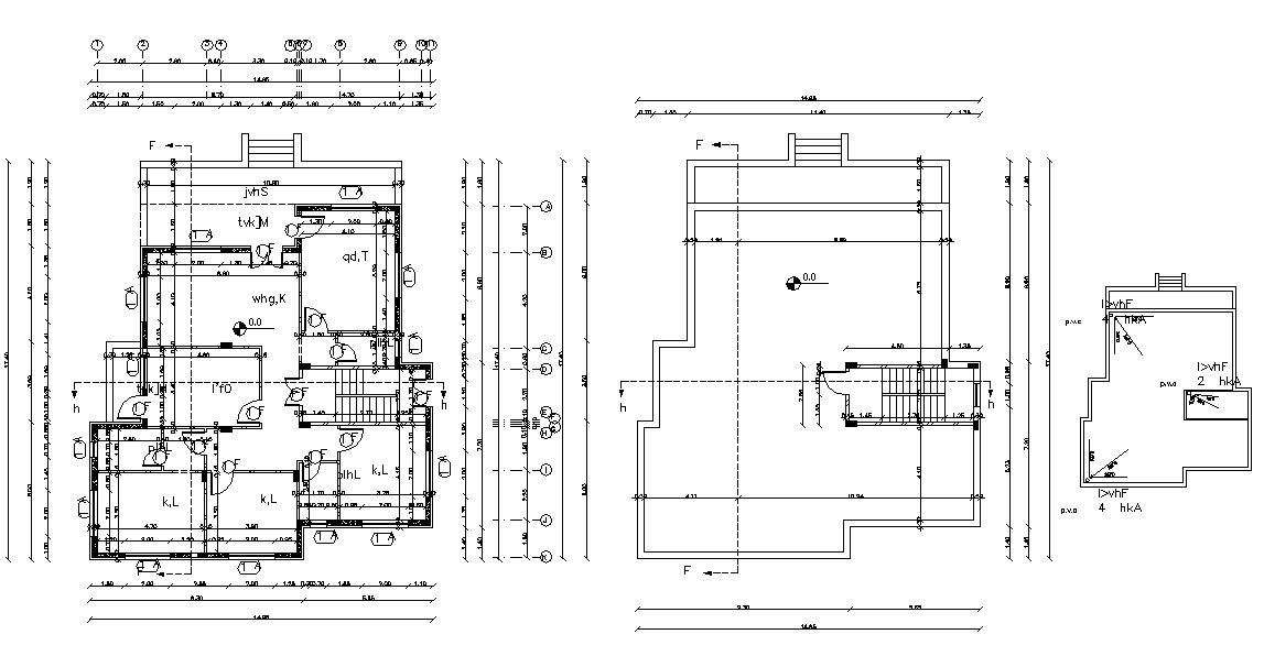 Housing Bungalow layout design 2d Floor plan that shows bungalow ground floor and terrace layout plan design along with bungalow dimension working set, room interior dimension, centerline details, staircase design, section line, and bungalow various other amenities detailing. Download architecture single storey bungalow layout floor plan.