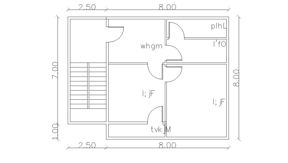 10.5 X 8-meter plot size house floor plan design sample drawing with dimension detail. download DWG file of small house plan CAD drawing.