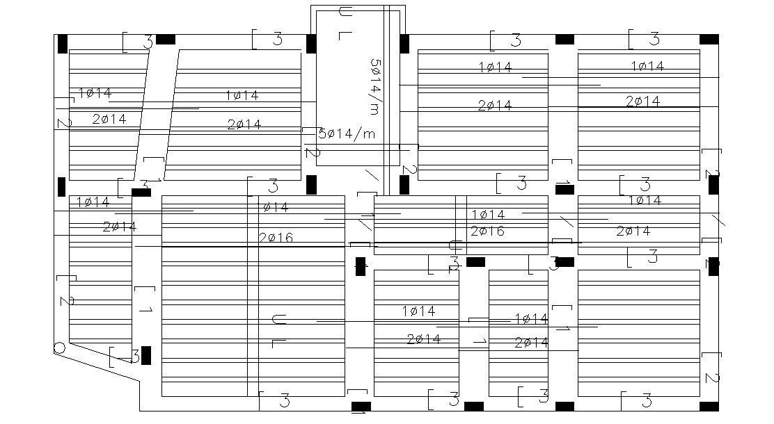 this is 3 BHK residence house construction working slab bar structure design with column layout plan design. download concrete slab bar designs free DWG file.