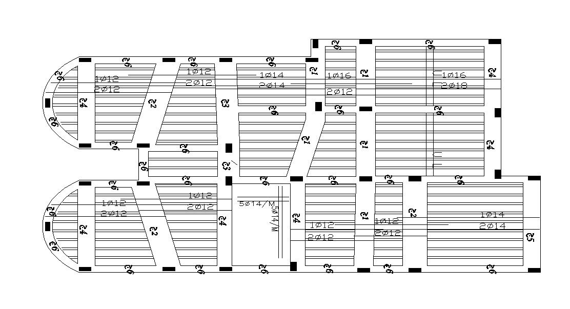 2d CAD drawing of 3 BHK house reinforcement slab bar structure design with column layout plan design DWG file. download free DWG file of RCC slab bar structure design.