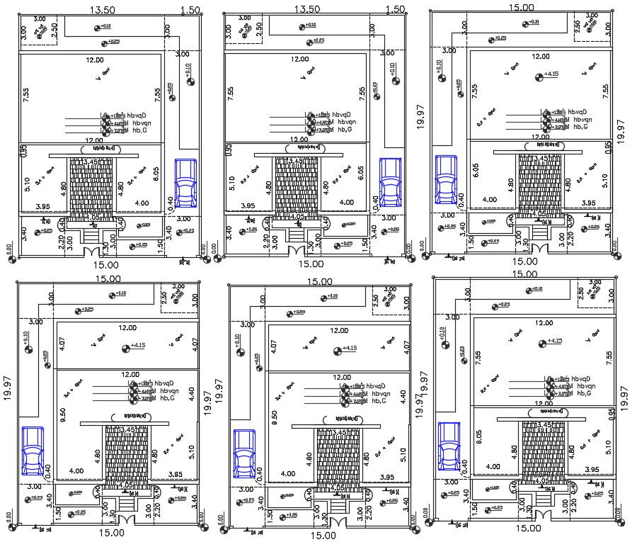 50 by 65 feet plot size for 3 BHK huge house master plan with different options available on a CAD drawing. download porch house master plan drawing DWG file.