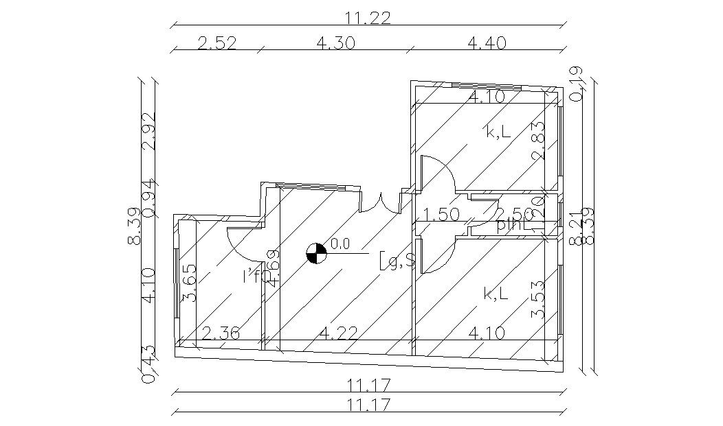 27 by 36 feet plot size for small 2 BHK house plan drawing with dimension detail. download free small house plan DWG file.