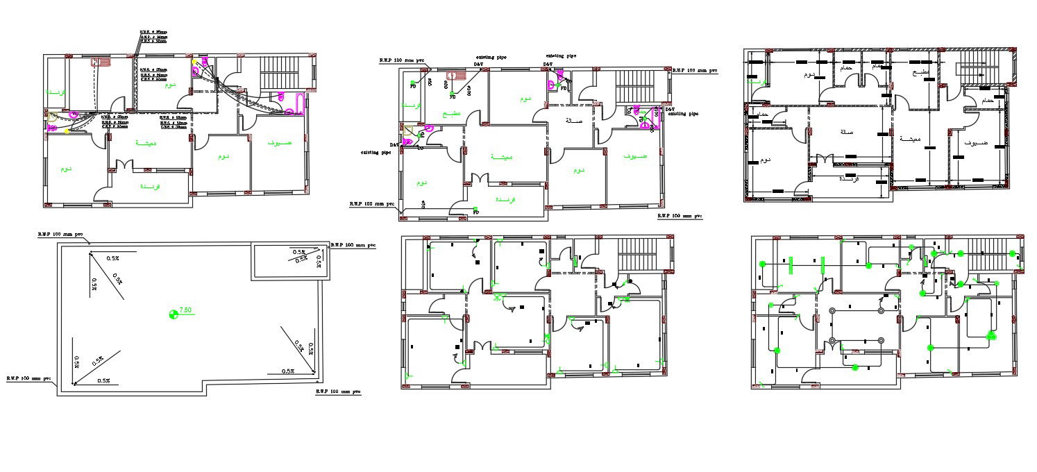 the AutoCAD drawing file shows the plumbing layout plan and electrical wiring plan CAD drawing shows the guideline of proper installation detail. also has piping detail which is connected kitchen to WC toilet. download 3 BHK house electrical and wiring plan.