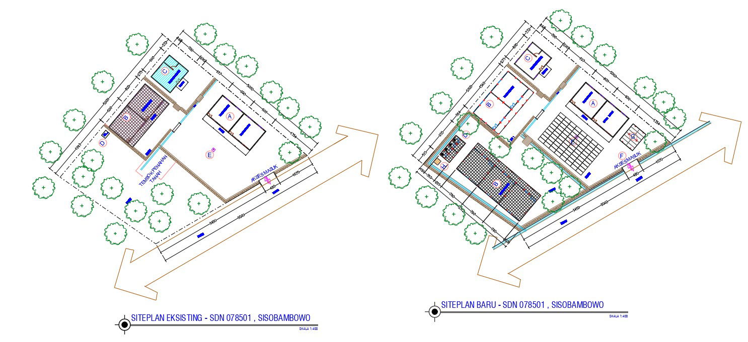 this is the government office plan CAD drawing that located in Pulo Geulis –Eksisting. also has landscaping design and dimension detail. download office plan drawing DWG file.