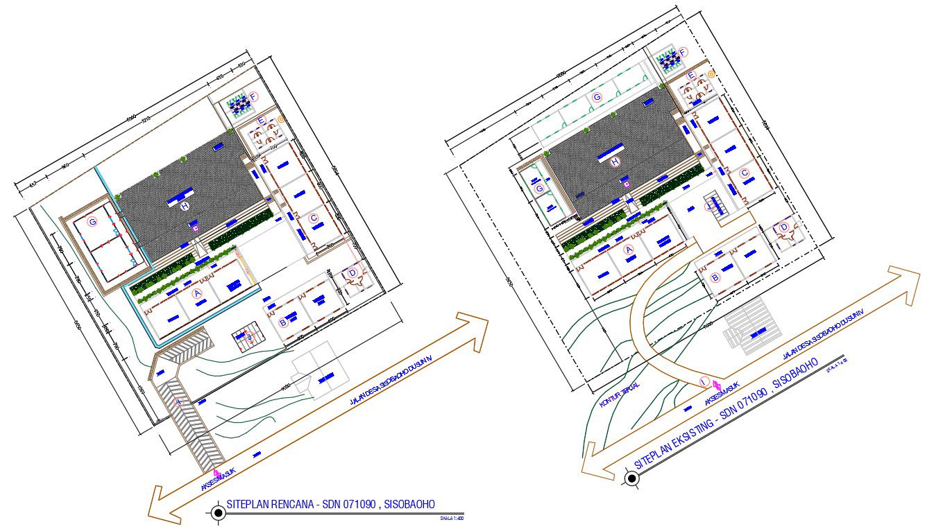 2d CAD drawing of government municipal office plan design includes a master plan that shows dimension detail with landscaping design DWG file.
