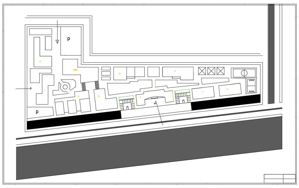 2D CAD drawing of a site plan that shows the build-up area and exiting the building development area. download free DWG file of site line plan drawing.