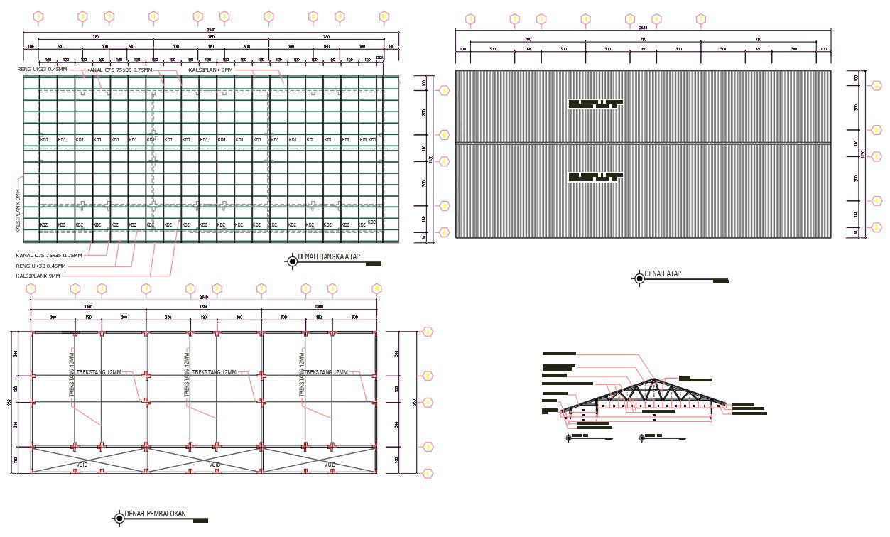 Download free DWG file residence house truss roof span structure design with center line plan and dimension detail. download truss span structure design.